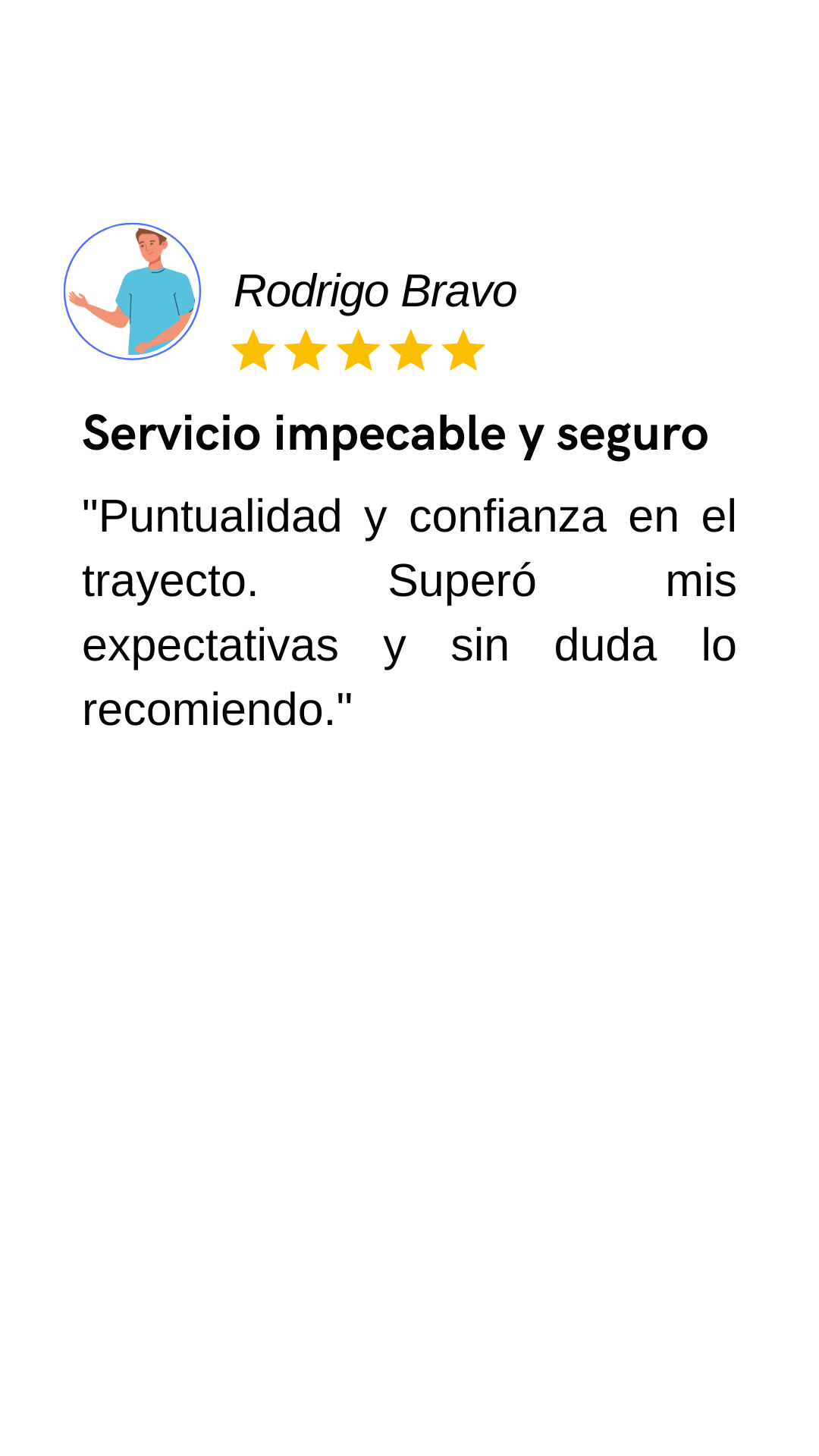 Nos esforzamos para que cada viaje sea seguro, cómodo y puntual, asegurando la mejor experiencia para nuestros clientes en cada ocasión.